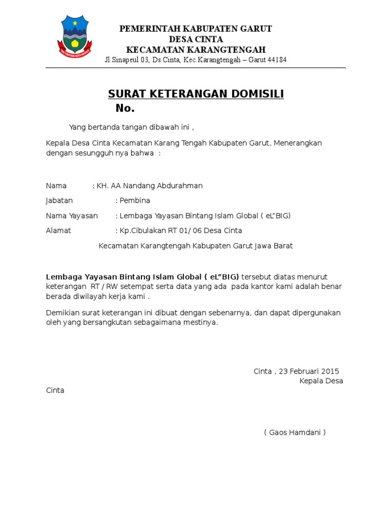 Contoh Surat Keterangan Domisili Yayasan Dari Desa Edukasi Lif Co Id