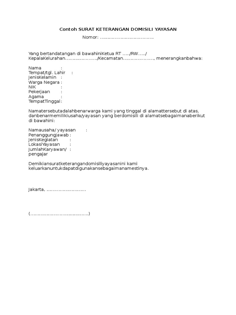 Contoh Surat Keterangan Domisili Izin Usaha. Contoh Surat Keterangan Domisili Lembaga Yayasan 3.