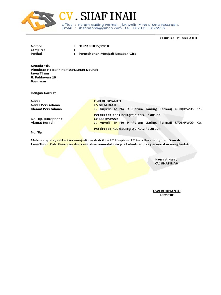 Contoh surat permohonan pembukaan rekening cv terbaru. Contoh Surat Permohonan Pembukaan Rekening Giro oleh Perusahaan. Yang bertanda tangan dibawah ini. Use Over 20 Unique Designs.