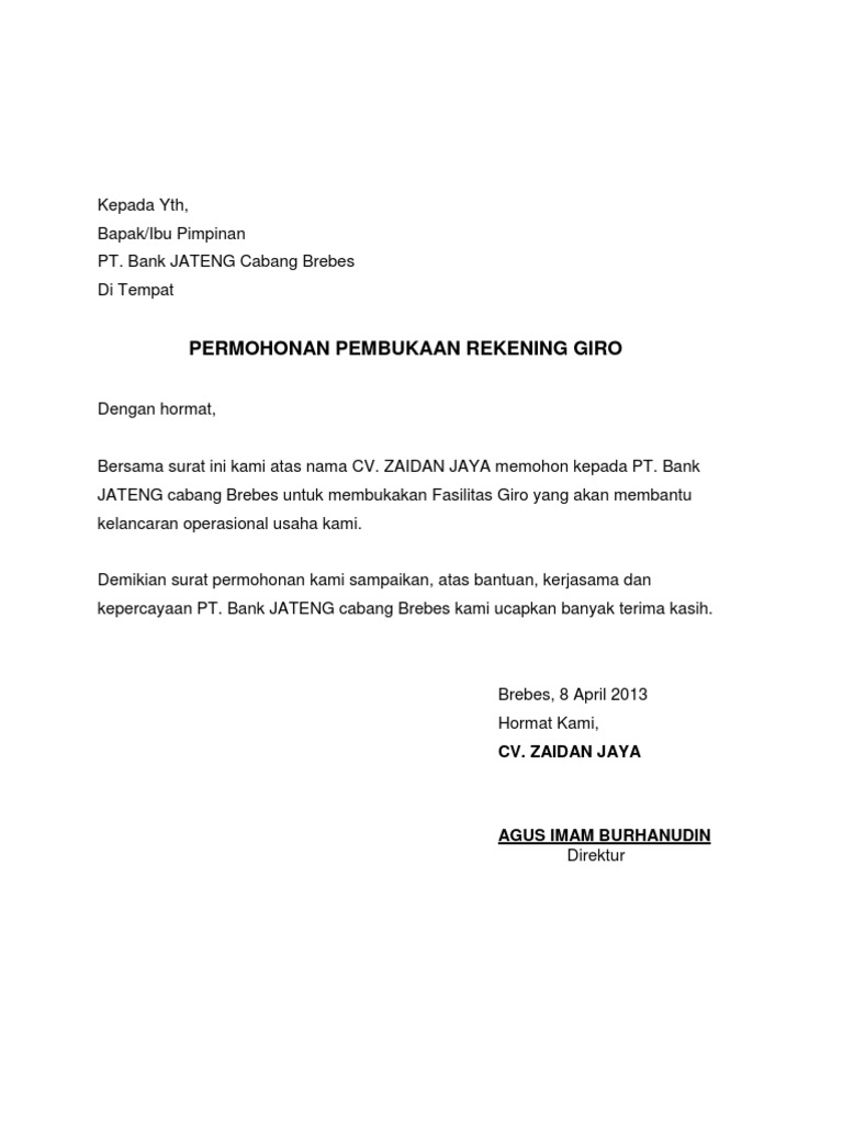 Contoh Surat Permohonan Pembukaan Rekening Giro Bjb Bagi Cute766