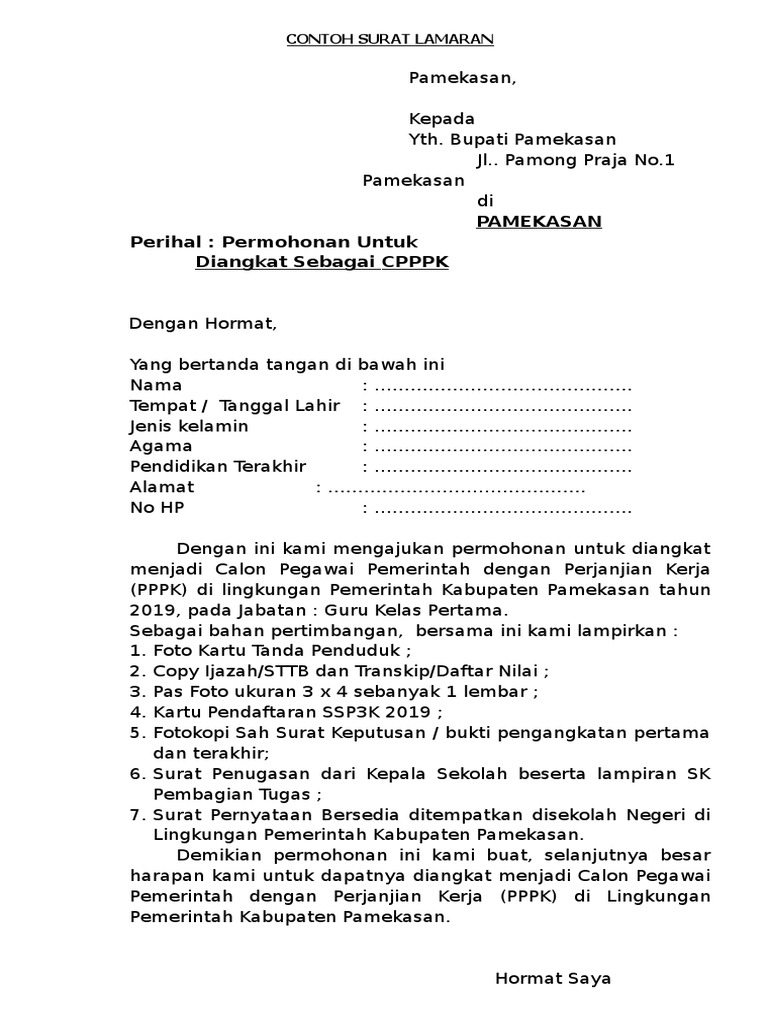 Contoh Surat Lamaran Kerja Pppk Untuk Formasi Guru Kontrak Di Pemda Dan Pemprov Matamu