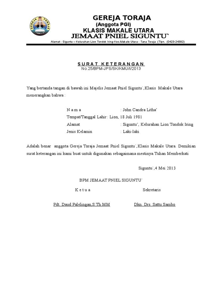 Contoh Surat Keterangan Dari Gereja Contoh Surat