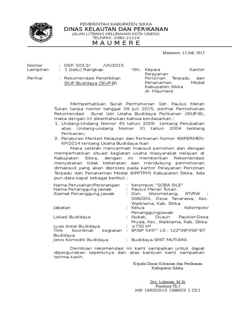 Contoh surat permohonan siup perikanan. ABDULLAH HULOPI TANGGAL SIUP. Surat Izin Usaha.