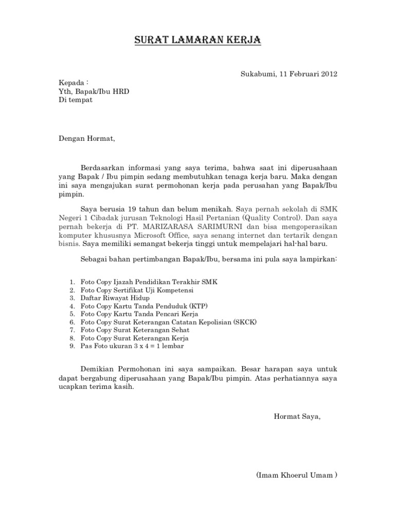 50 Contoh Surat Lamaran Kerja Quality Control Berbagi Resep