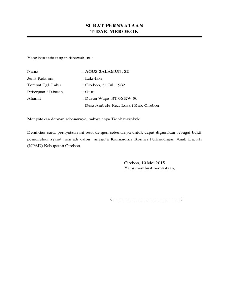 Contoh Membuat Surat Pernyataan Tidak Merokok Jawa Mbeling