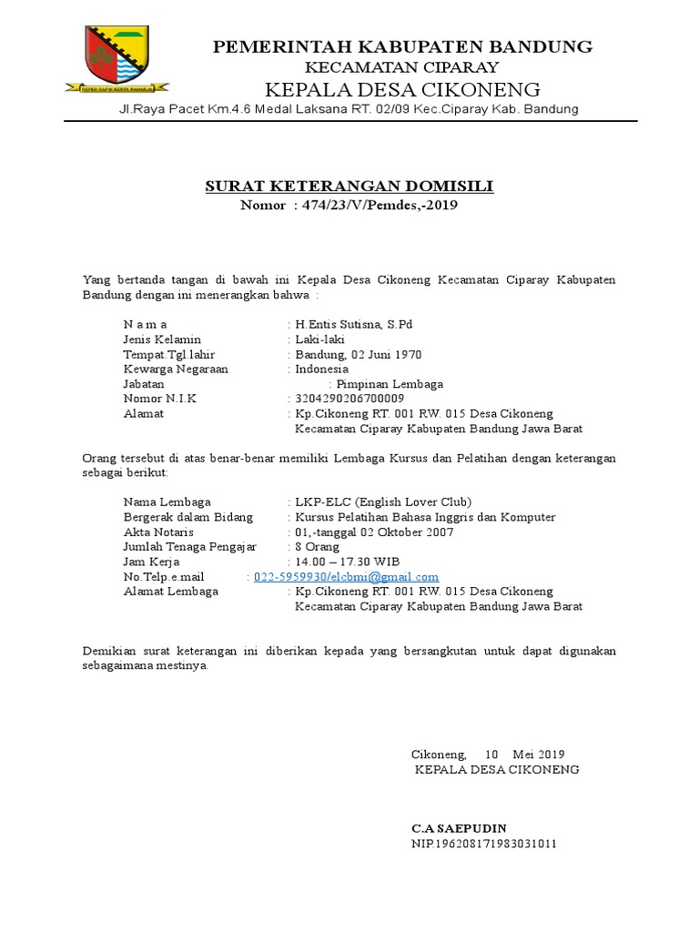 10 Contoh Surat Keterangan Domisili Rt Lurah Terbaru 2020