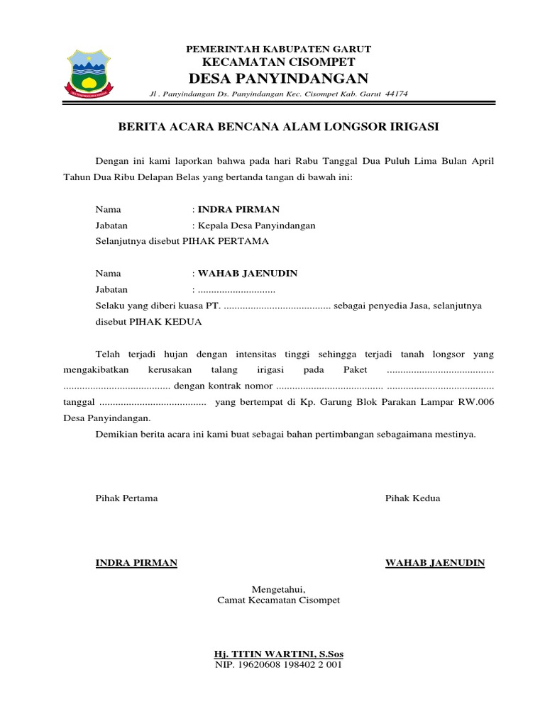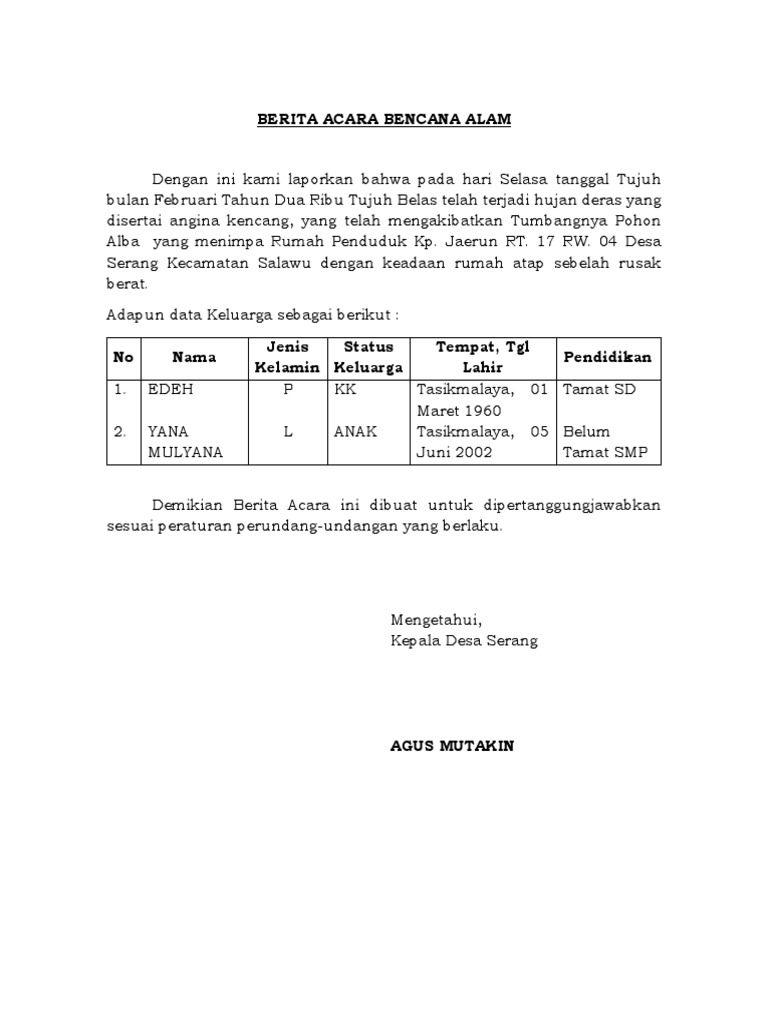 Contoh surat berita acara bencana alam terbaru. Sehingga membuat kamu pusing tuju keliling. Contoh Surat Berita Acara Kejadian Bencana Alam adalah gambar Contoh Berita Acara berdefinisi tinggi dan memiliki ukuran 768x1024. Berikut ini Contoh Berita Acara yang baik dan benar serta menarik perhatian yang dapat anda gunakan dalam tema maupun format penulisan surat.