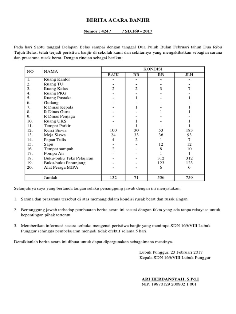 19 Contoh Surat Berita Acara Banjir