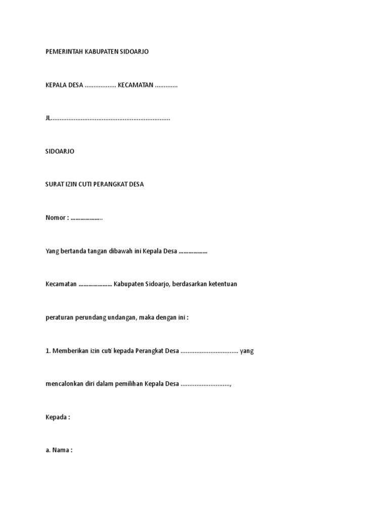 Surat Izin Cuti Perangkat Desa Dan Calon Kepala Desa Contoh Surat
