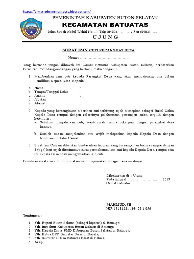 Surat Izin Cuti Perangkat Desa Dari Camat Jika