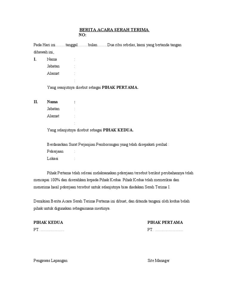 Contoh Surat Berita Acara Serah Terima Hasil Pekerjaan Laluahmad Com