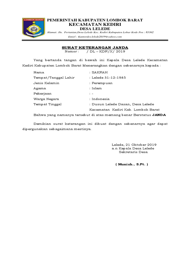 12 Contoh Surat Keterangan Janda Yang Resmi Baik Benar Dalam Format Word Doc