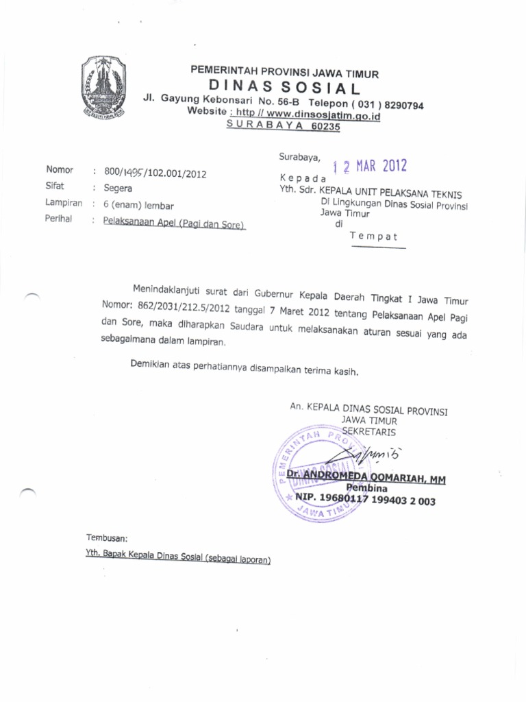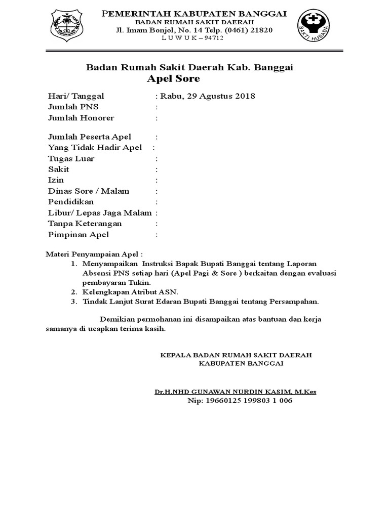 019 1 18175 042 1989 perihal pelaksanaan apel pagi dan siang sudah tidak sesuai dengan keputusan gubernur jawa timur nomor. Pada umumnya surat ini bertujuan untuk menyampaikan sebuah informasi dari pengirim kepada penerima surat tersebut. Surat Menteri PANRB Perihal Himbauan Pelaksanaan Apel Pagi 18 Jun 2021 Dilihat.