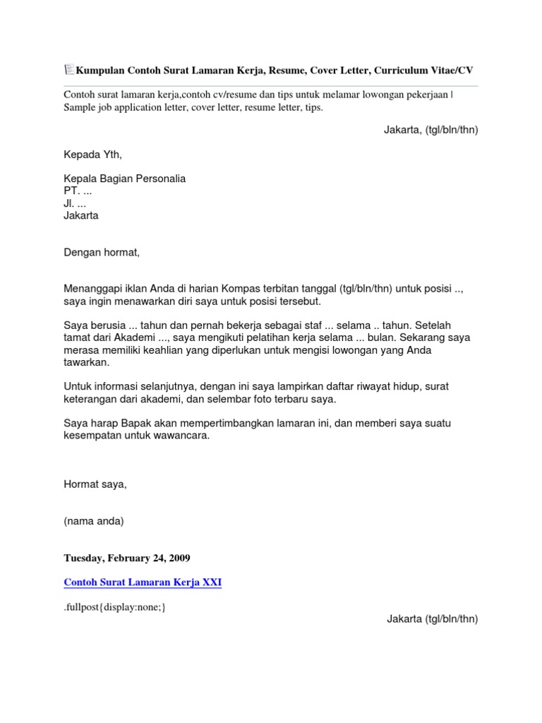 50 Contoh Surat Lamaran Kerja Xxi Berbagi Resep