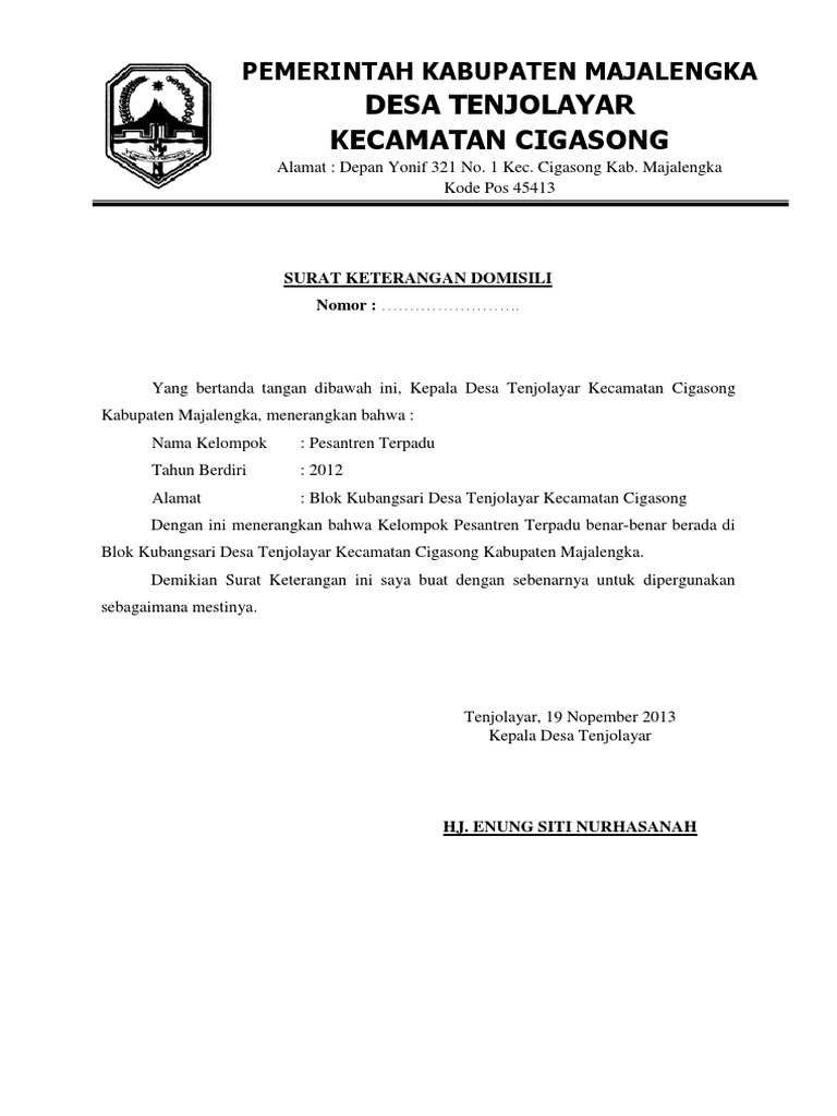 Desa Cinerang Keterangan Domisili Ponpes Al Istiqomah. Contoh Surat Pengangkatan Kepala Sekolah 7313. Kumpulan Contoh Surat Rekomendasi Masuk Pesantren Terbaik 2019.