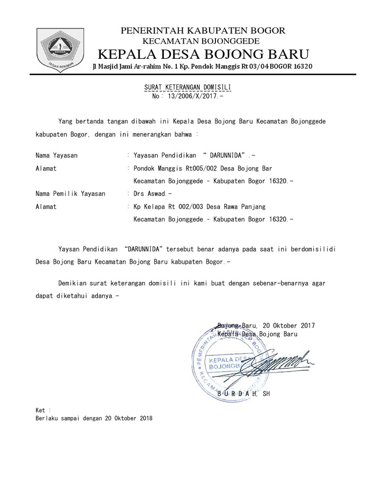Contoh Surat Keterangan Domisili Yayasan Dari Desa Nusagates