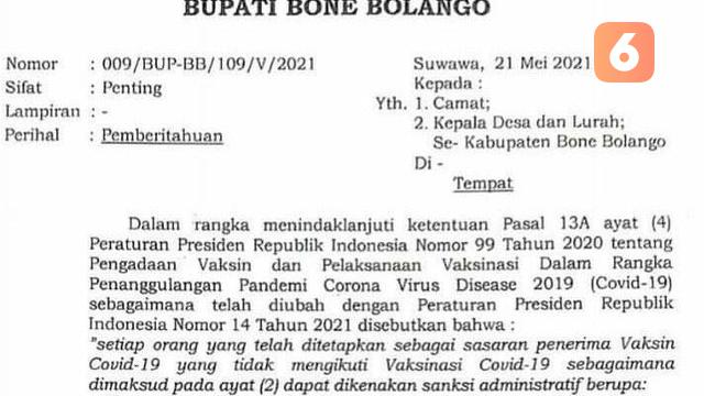 Menolak Disuntik Vaksin Covid 19 Warga Bone Bolango Siap Siap Kena Sanksi Regional Liputan6 Com