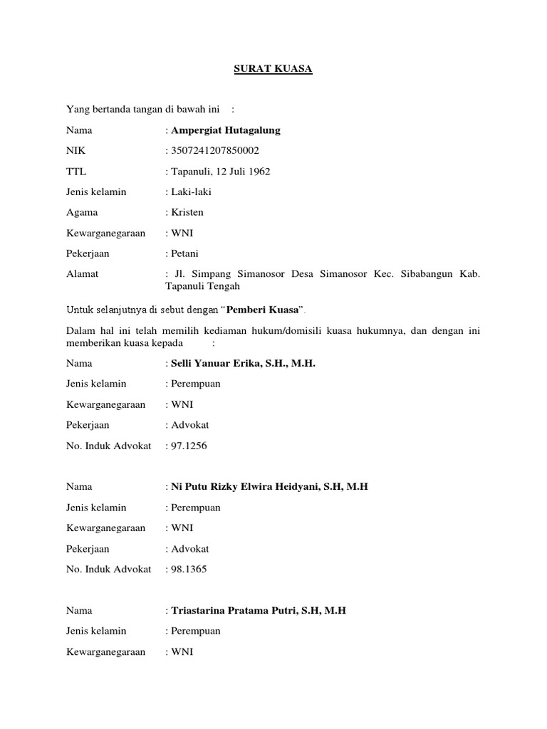 Contoh Surat Kuasa Gugatan Phi Contoh Surat