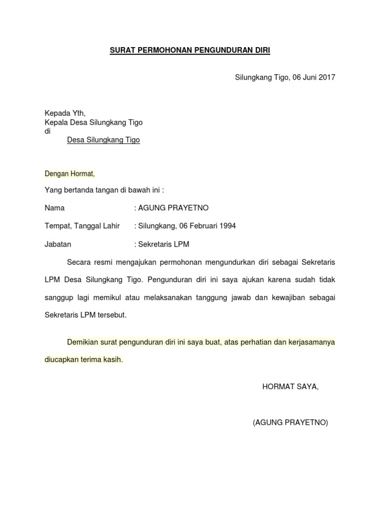 Contoh Surat Pengunduran Diri Dari Pengurus Bumdes Berbagi Contoh Surat