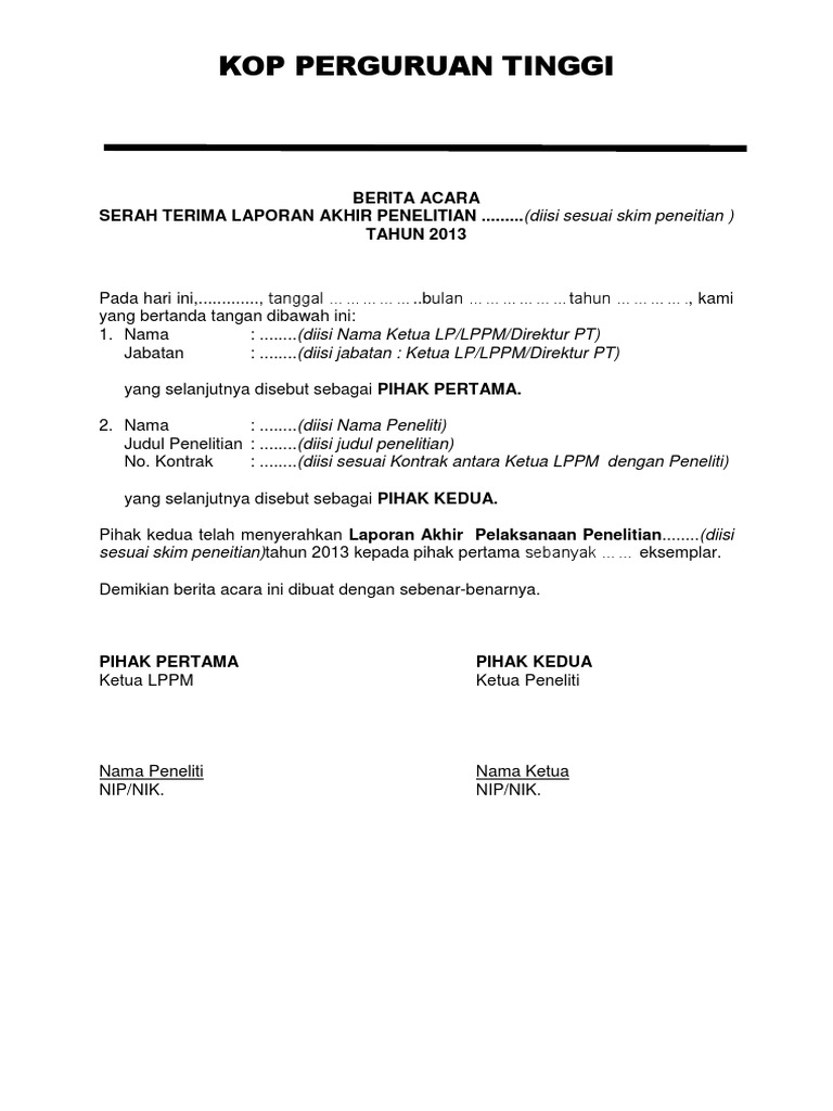 Contoh Surat Pernyataan Dan Berita Acara Lap Akhir
