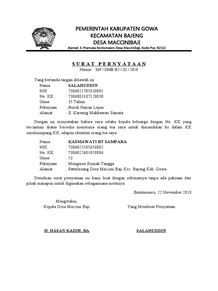 Contoh Surat Pernyataan Numpang Kk Gawe Cv
