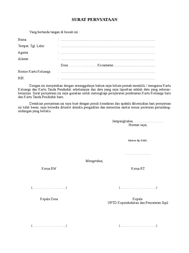 Contoh Surat Pernyataan Yang Benar Dan Terbaru Download Contoh Surat Pernyataan Yang Benar Dan Terbaru Download format surat lain. Termasuk membuat surat numpang nikah. Prosedurnya adalah pertama anda harus meminta surat pengantar dari rt atau rw dengan melampirkan berkas materai 3000 dan 6000 fotokopi kartu keluarga.