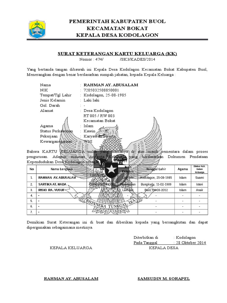 Contoh Surat Keterangan Kartu Keluarga Word Mpfdocuments Website Indonesia