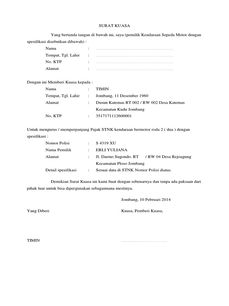 Kurniawan kusumo nomor ktp. Contoh surat kuasa untuk mengurus stnk hilang have a graphic from the other contoh surat kuasa untuk mengurus stnk hilang it also will include a picture of a kind that might be observed in the gallery of contoh surat kuasa untuk mengurus stnk hilang. Dan berikut ini adalah contoh format surat kuasa perpanjangan STNK yang bisa digunakan untuk melakukan pembayaran pajak tahunan ataupun 5 tahunan.