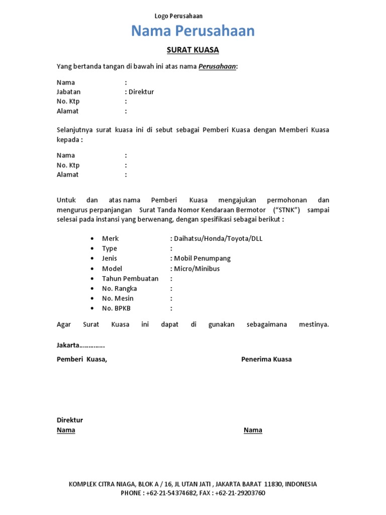 Contoh Surat Kuasa Perpanjang Stnk Mobil Perusahaan