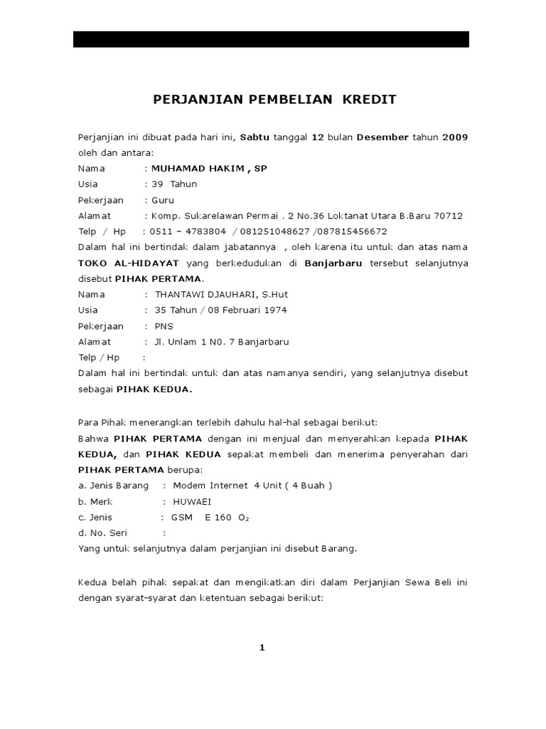 33 Surat Perjanjian Kredit Barang Info Dana Tunai